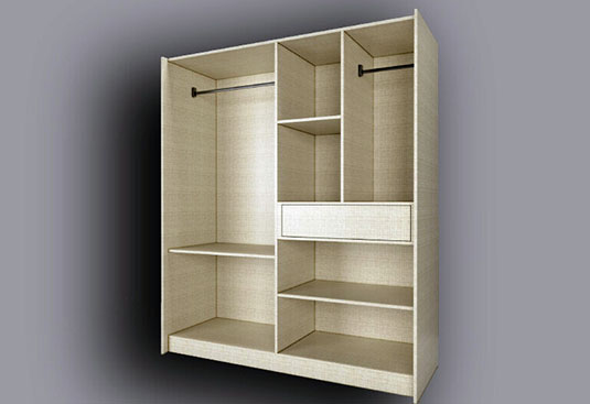 This versatile sliding wardrobe with charming UV high gloss shutter and flush handle is creating a minimalist yet stylish look. The open shelves at one end provides ample space to showcase decorative pieces or essentials for easy access. The starting price displayed for this kitchen includes only the wooden components and accessories.